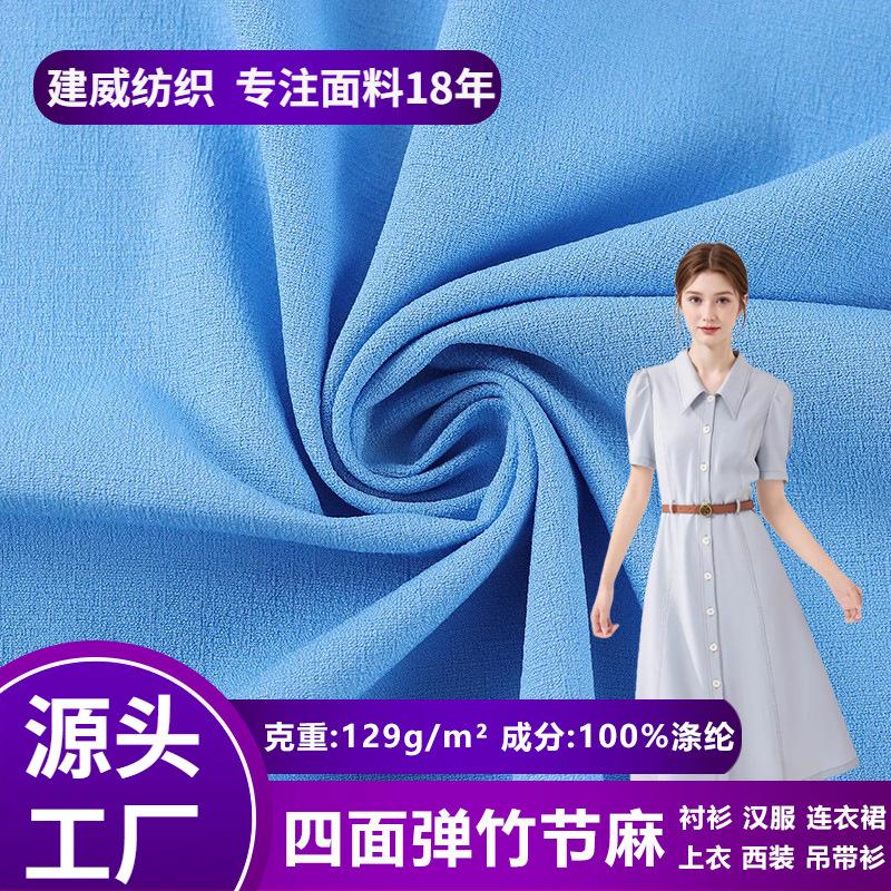 四面弹竹节麻雪纺面料皱感衬衫连衣裙西装汉服布料假捻丝涤纶布