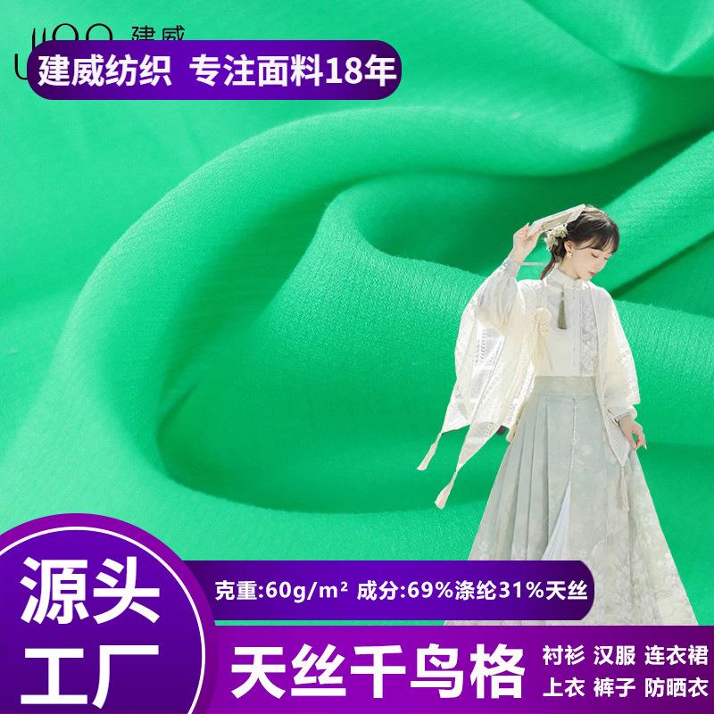涤纶天丝面料千鸟格春夏服装衬衫裙子连衣裙国风汉服防晒衣布料
