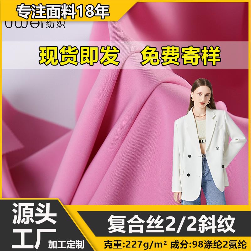 复合丝2/2斜纹西装面料春秋加捻时装套装裙子裤子布料弹力涤纶布