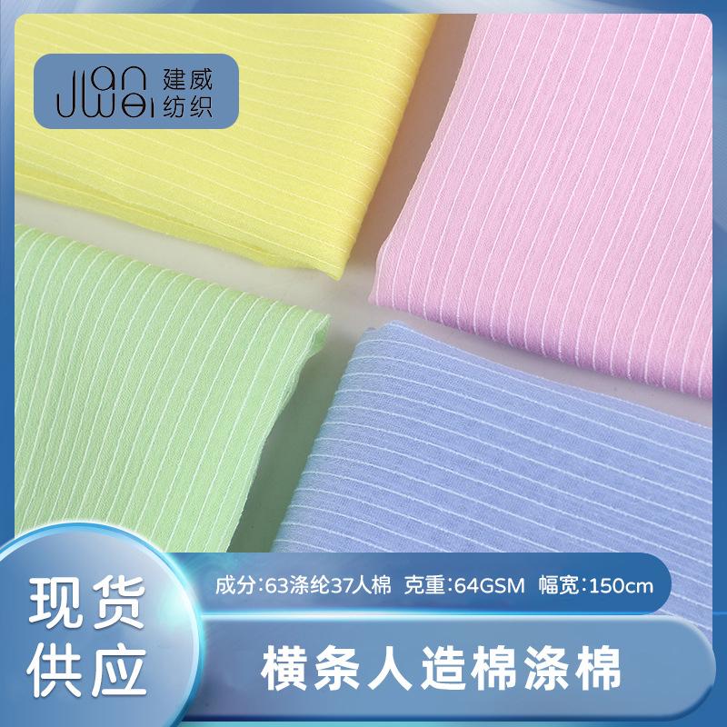 厂家现货仿天丝人棉布 垂顺轻薄横条涤棉面料 衬衫吊带裙汉服布料