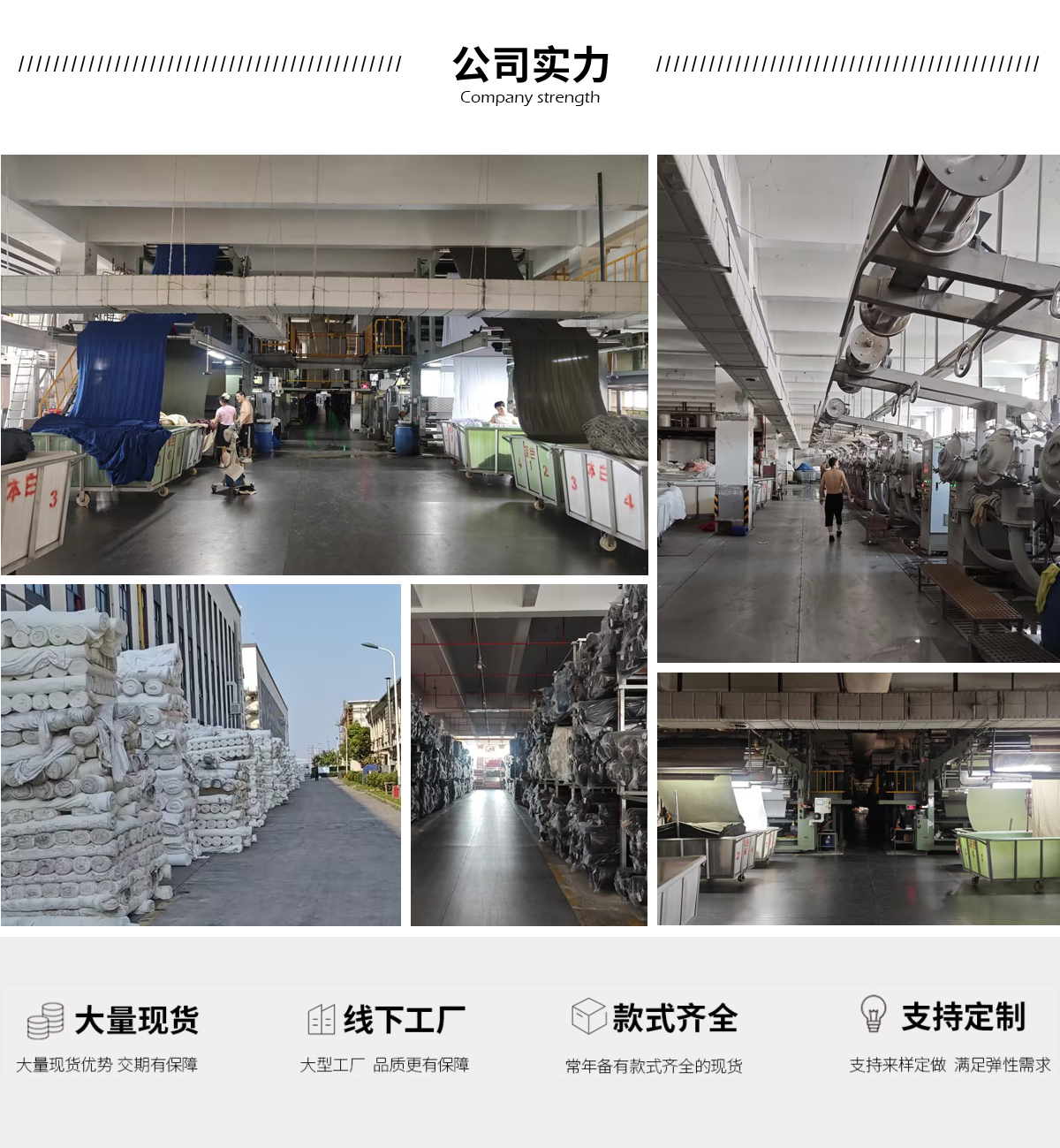 泽威纺织成立于2005年,是一家集研发、生产、销售和服务于一体的纺织面料公司。从前端流行趋势、研发打样、织造、染整、到布料销售,泽威纺织始终以“创新·品质·服务·快速响应”为理念服务好每一位客户,赢得了广大客户的信任和业界的广泛认可。泽威纺织分别在柯桥、广州、织里设立分销渠道,重视市场,重视数据,通过精准的数据洞察先机,精准把握潮流趋势,为客户提供紧贴时尚潮流的新面料。公司主要经营雪纺、醋酸、天丝、尼龙、TR、T800、T400、长丝、复合丝、四面弹、记忆布等,产品品种丰富,能够满足多元化的客户需求。泽威纺织拥有超过20000m2的面料基地,各类员工近百人,长期备有大量现货且发货速度快。泽威纺织一直秉承着“客户至上,服务至善”的经营理念,在不断发展壮大的道路上同各位客户一起携手并进。